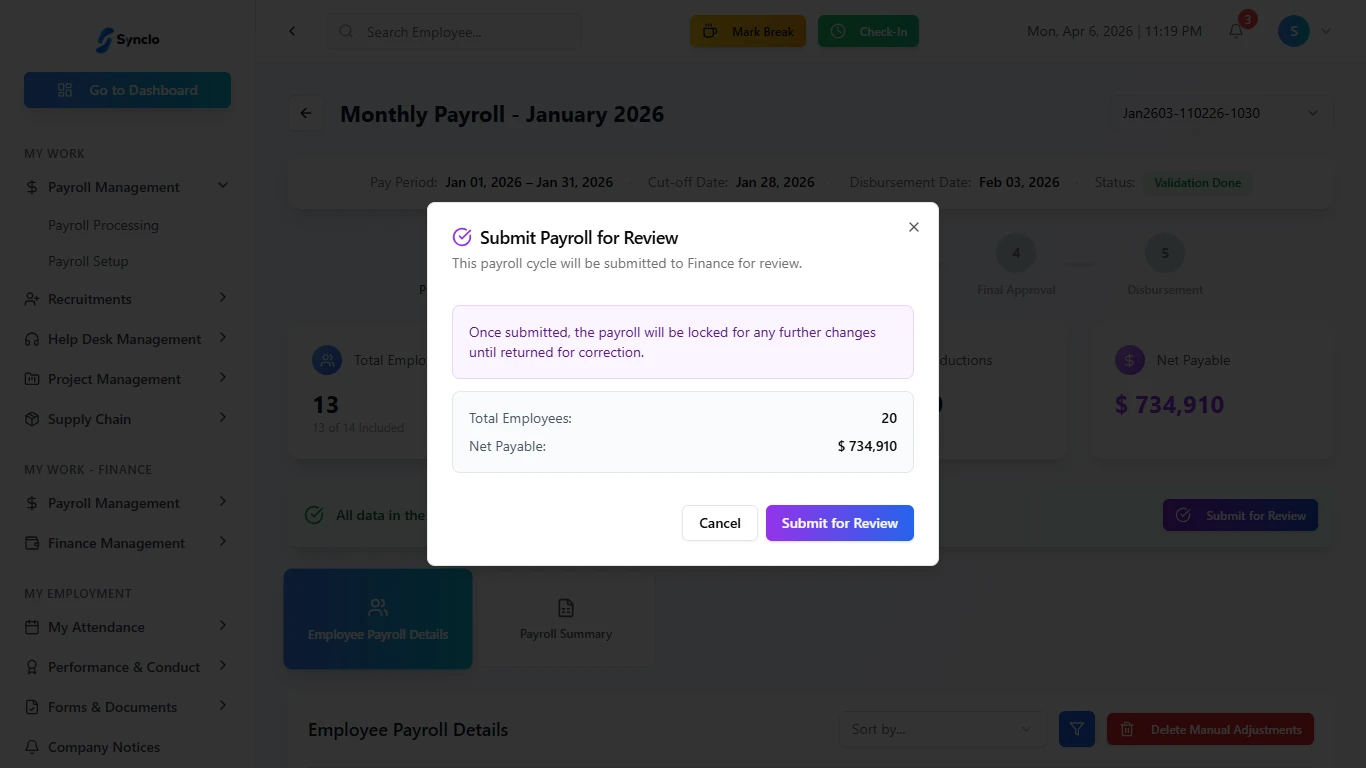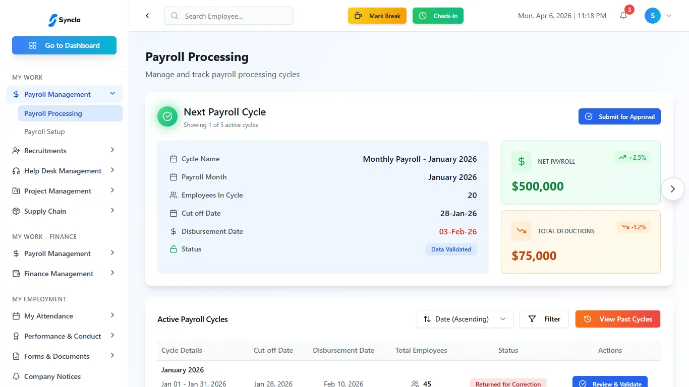 Synclo empowers HR and finance teams to manage payroll with precision through automated calculations, centralized data, and real-time insights that ensure accuracy, compliance, and operational efficiency. It brings clarity to complex payroll processes, allowing teams to operate with confidence and control at every step.