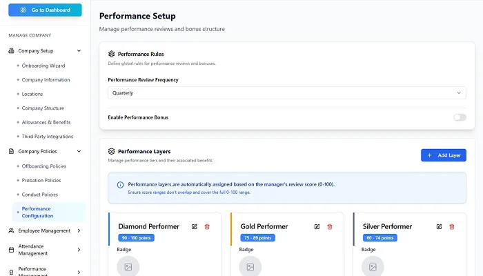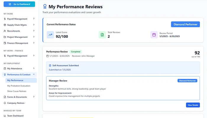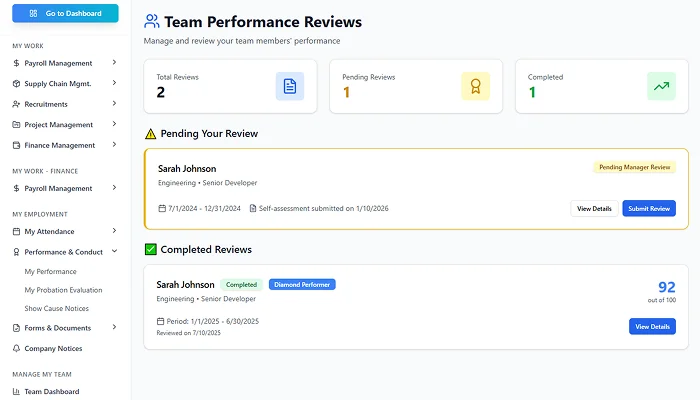 Empower managers and teams to align individual performance with organizational goals. Synclo’s Performance Management system helps you evaluate, reward, and grow your workforce through continuous feedback, appraisal cycles, goal tracking, and performance analytics—all from a single integrated dashboard.
